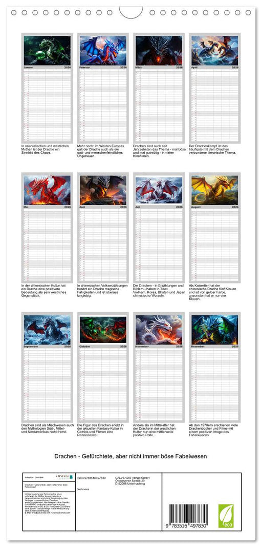 View full detailsDrachen - Gefürchtete, aber nicht immer böse Fabelwesen (CALVENDO Familienplaner 2026)