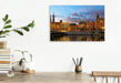 Wenn sich der Tag verabschiedet und die Lichter der Speicherstadt erwachen, offenbart sich Hamburg von seiner stimmungsvollsten Seite. Dieses Leinwandfoto fängt den magischen Moment ein, in dem die historischen Kontorhäuser über dem Brooktorhafen in warmes Abendlicht getaucht sind – ein faszinierendes Zusammenspiel aus Wasser, Backstein und Geschichte.