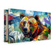 Ein Bild, das auf eine lockere, unbeschwerte Art Tiere, hier ein Braunbär, präsentiert. Im Vordergrund steht nicht die Exaktheit, sondern die Farbigkeit und die Freude an den Farben.