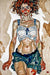 Mit diesem Bild im Stil von Egon Schiele tritt Schieles individuelle Auffassung des Expressionismus hervor. Leiden drückt sich in einer sehr reduzierten, verhaltenen Farbpalette aus und ist oftmals gepaart mit kantigen und etwas verzerrten Formen.