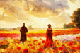Premium Textil-Leinwand Diese Blumenwiese bei Sonnenuntergang könnte auch Camille Pissarro inspiriert haben.