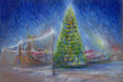 Tauche ein in die winterliche Magie mit unserem einzigartigen Puzzle! Das kunstvolle Stadtmotiv im Pastellkreide-Stil zeigt einen festlich geschmückten Weihnachtsbaum im Vordergrund, während im Hintergrund die verschneiten Kirmesstände und leuchtende Lichterketten für eine warme, festliche Atmosphäre sorgen. Das überwiegend in sanften Blautönen gehaltene Motiv fängt den Zauber und die Ruhe der Weihnachtszeit ein. Perfekt für alle, die handgezeichnete Details lieben und die festliche Stimmung in ihrem Zuhause erleben möchten!