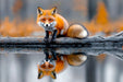 Premium Textil-Leinwand Ein neugieriger Fuchs auf einem treibenden Baumstamm, umgeben von stillem Wasser