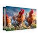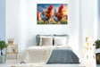 Premium Textil-Leinwand Hier gackern fröhliche Hühner um die Wette