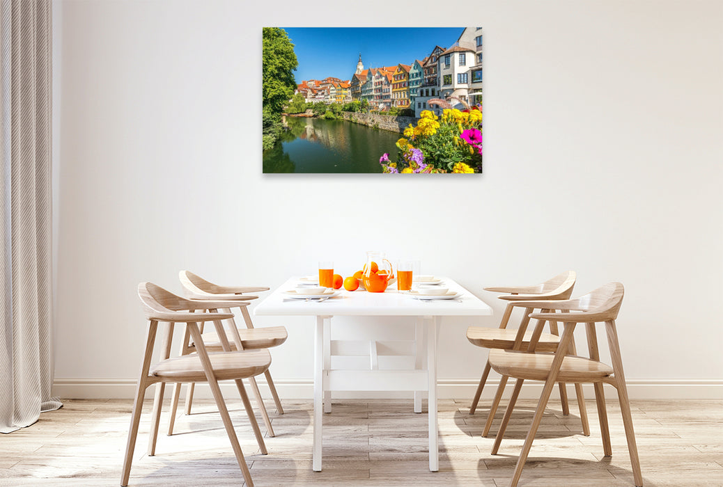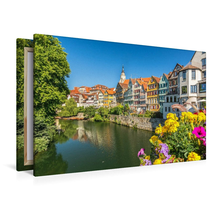 Premium Textil-Leinwand Historische Tübinger Neckarfront mit Blumenschmuck