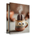 So sieht Koffein in Reinform aus! Dieser aufgedrehte kleine Espresso schaut mit großen Augen in die Welt und trägt zwei riesige, dampfende Kaffeebohnen wie eine Turbofrisur auf dem Kopf. Das schlichte, stilvolle Setting mit warmen Erdtönen betont die Kraft und den Charakter dieses humorvollen Motivs. Perfekt für Kaffeejunkies, Morgenmuffel und alle, die ein bisschen Energie mit Augenzwinkern in ihre Räume bringen möchten. Ideal für Küche, Kaffeebar oder Büro – dieses Bild ist wie ein doppelter Espresso für die Wand. Bild mit KI generiert