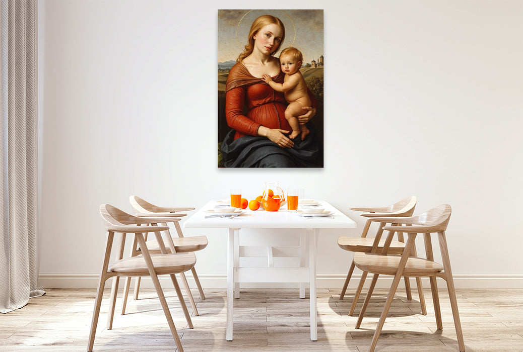 Premium Textil-Leinwand Inspiriert von Raffael/Madonna mit Kind (ca. 1508)