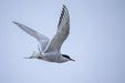 Eine Küstenseeschwalbe im Flug – ein häufiger Anblick auf den Äußeren Hebriden. Küstenseeschwalben nisten in größeren Kolonien; bei einer Wanderung durch eine solche Kolonie wird man immer wieder von den Vögeln angegriffen, die durchaus schmerzhafte Schnabelhiebe austeilen.