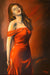 Premium Textil-Leinwand Lady im roten Kleid