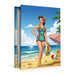 Betrachten Sie unsere bezaubernde Strand-Schönheit, die in einem stilvollen Bikini vor der Kulisse einer sonnigen Küste posiert. Jedes Detail dieser Illustration fängt die ikonische Ästhetik der 50er Jahre ein – von der klassischen Pose über den eleganten Schnitt des Bikinis bis hin zum verführerischen Augenzwinkern.
