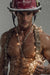 Ein heißer Feuerwehrmann steht im Schnee – mit nacktem Oberkörper, verschneitem Helm und einer glitzernden Lichterkette. Dieses Motiv kombiniert Kraft, Reiz und Winterstimmung mit einer guten Portion erotischem Charme.