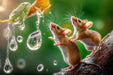 Premium Textil-Leinwand Zwei Mäuse beim Regentropfen-Fangen-Spiel