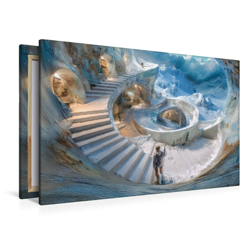 Treppenlabyrinth in imposanter Berglandschaft KI-basierte fesselnde, vielschichtige Treppenlabyrinthe mit atemberaubenden Perspektiven wie in eine...