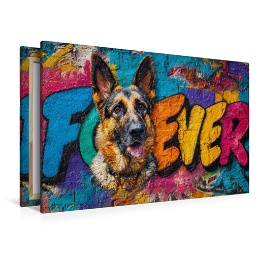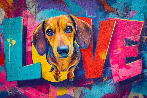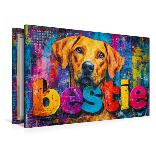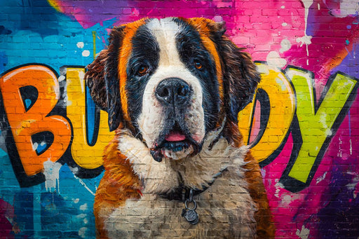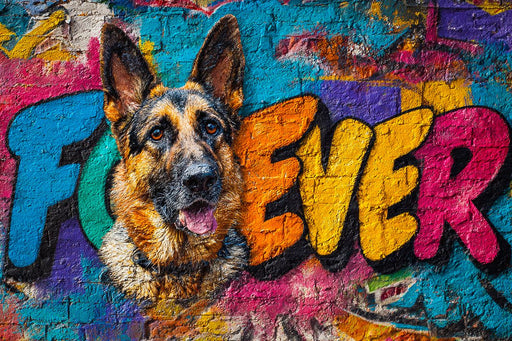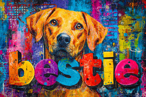 Diese ausdrucksstarke Illustration verbindet die Kraft eines treuen Hundeblicks mit modernem Graffiti- und Street-Art-Stil. Die leuchtenden Farbe...