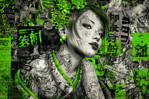 Farbe, Energie und urbanem Spirit. Diese Illustration vereint kraftvolle Street-Art, Neonästhetik und rebellische Graffitikunst zu einem ausdruck...