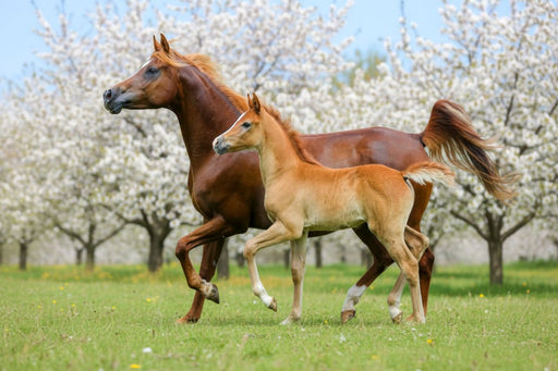 View full detailsPremium Textil-Leinwand Araberstute und Fohlen in synchronem Trab