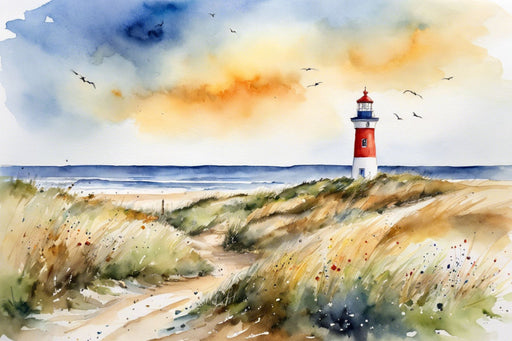 Zauberhaftes Aquarell Das Norddeutsche Wattenmeer ist ein einzigartiges Naturschutzgebiet an der Nordseeküste Deutschlands. Mit seinen weiten Sand...