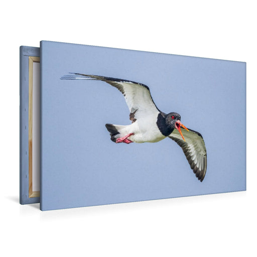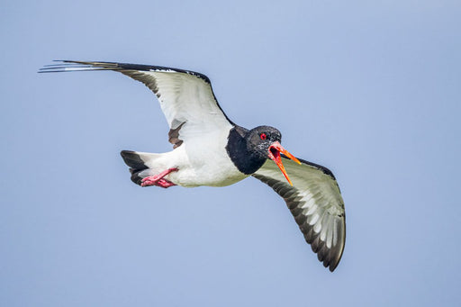 Ein Austernfischer im Flug: gerade während der Brut- und Aufzuchtperiode fliegen Austernfischer bedrohlich wirkende Angriffsflüge, um den Spazier...