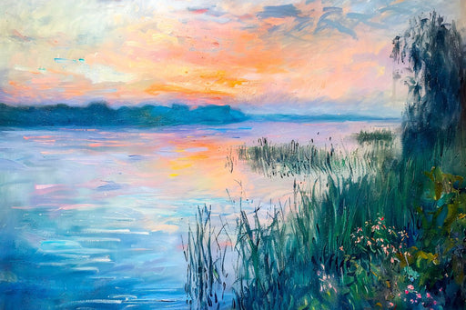 View full detailsPremium Textil-Leinwand Abendruhe am märkischen See im Havelland impressionistischen Stil