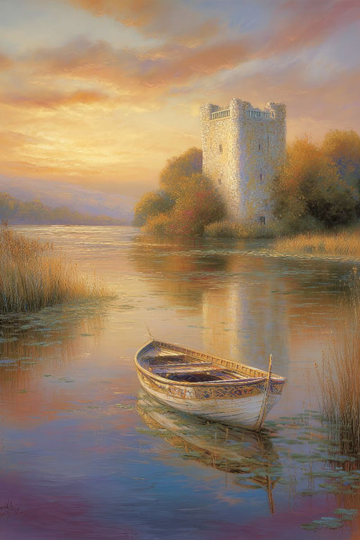Ein Motiv aus dem Kalender „Turm-Romantik“ Dieses KI-generierte Gemälde fängt die Magie eines einsamen, romantischen Turms ein – eingebettet in ei...