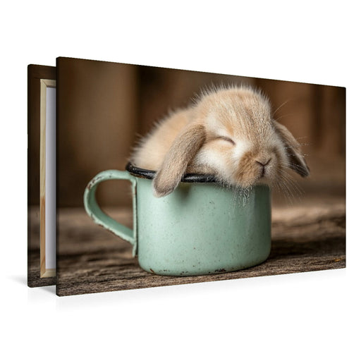 View full detailsPremium Textil-Leinwand Schlafendes Häschen in Tasse - Gemütlichkeit in ihrer süßesten Form