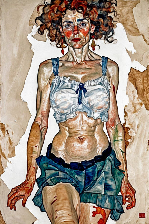 Nonkonformistische Frauendarstellung Mit diesem Bild im Stil von Egon Schiele tritt Schieles individuelle Auffassung des Expressionismus hervor. L...