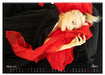 Wie ein Phönix in schwarz und rot verzaubert die junge Blondine. Kontraste, die ihre Sinnlichkeit umrahmen.