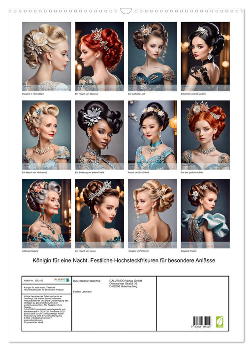 Aufwändige Frisuren für besondere Anlässe (Monatskalender, 14 Seiten) Mit diesem Kalender, dessen Fotos mit Unterstützung einer KI von Steffani Le...