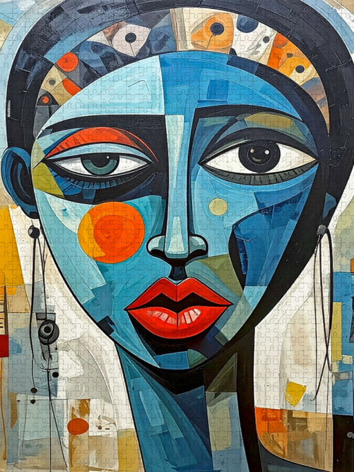 Porträt und Geometrie Das Bild von Youma ist von der künstlichen Intelligenz nachempfunden dem Stil des Synthetischen Kubismus, der die Bildelemen...