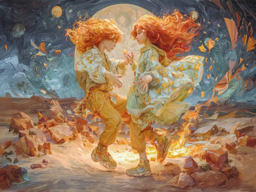 Tanzende Kinder Entdecken Sie die faszinierende Welt der anmutigen Menschen, stimmungsvoll und verträumt. Die KI-generierten Artworks zeigen wunde...