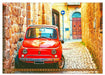 März: Der Klassiker Fiat 500: wer die schmalen, engen Gassen durchwandert, versteht warum Italien der Ursprung so vieler, kleiner praktischer Autos ist, Sizilien, Italien