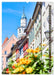 Februar: Der Kirchturm des Überlinger Münsters St. Nikolaus hinter farbenfrohen Häusern