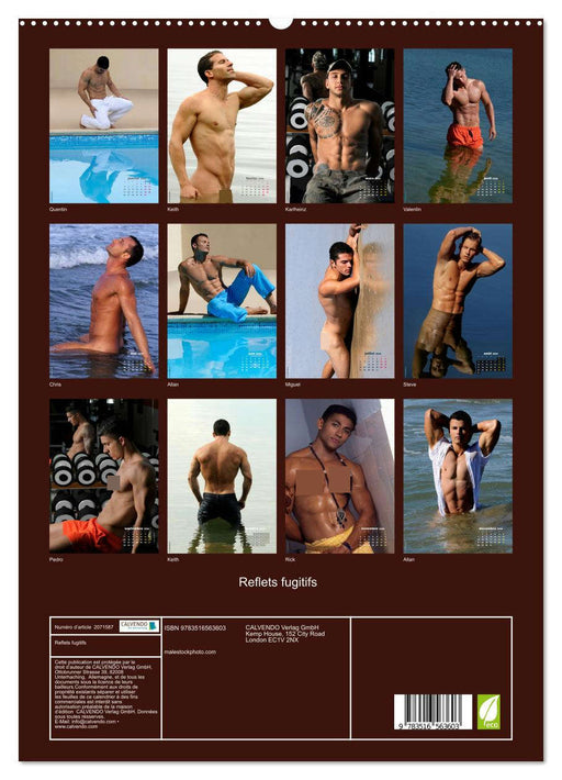 12 pages consacrées au corps masculin en reflet (calendrier mensuel, 14 pages) Ce calendrier illustré est consacré au reflet, thème très estimé pa...