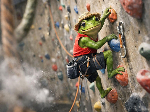 Unser Frsoch an der Kletterwand Hoch hinaus: Der „Kletter Frosch“ zeigt abenteuerlustige, spektakulären Kletterszenen – mal an steilen Felswänden,...