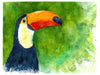 Exotisch, farbenfroh und wachsamen Blicks – der Tukan entfaltet seine ganze Lebendigkeit. Das expressionistische Aquarell fängt die leuchtenden Farben, die Eleganz seines Schnabels und die spielerische Energie dieses tropischen Vogels ein.