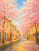 Blühende Kirschbäume rahmen eine ruhige Gasse, während zartes Licht auf die Pflastersteine fällt. Die Szene strahlt Leichtigkeit, Romantik und Harmonie aus – ideal für Puzzle-Liebhaber*innen, die poetische Stadtlandschaften und feine Details lieben.