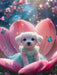 Das Märchen von Däumelinchen in neuer Form: Ein Hundekind ruht in einer Blüte und erinnert an die kleine Welt des Märchens. Ein Motiv, das die Unschuld des Tieres mit Fantasie und Märchenstimmung verbindet.