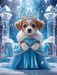 Ein Märchen voller Kälte und Glanz – neu gesehen durch die Augen eines Welpen. Zwischen funkelnden Eiskristallen und stillen Schneefeldern begegnet uns die Schneekönigin in ungewohnter Gestalt. Das Motiv vereint Wintermagie und Tierliebe zu einer Szene, die zugleich klar und geheimnisvoll wirkt.