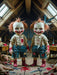 Max und Moritz erscheinen als grotesk entstelltes Zwillingspaar mit wächserner Haut, eingefallenen Augenhöhlen und einem ständigen, verzerrten Grinsen, das zu breit für ihre Gesichter ist. Ihre abgerissene Kinderkleidung ist mit Blut, Federn und Drahtfetzen bedeckt – die Werkzeuge ihrer "Streiche" fest in den knochigen Händen: rostige Zangen, Zwirn, Nadeln und geschärfte Gänsefedern. Hinter ihnen ragt ein schiefer Dachboden voller verstümmelter Spielzeuge, Tierkadaver und zerbrochener Schulbänke auf – ein Altar ihrer grausamen Kreativität.