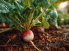 Radieschen mit grünen Blättern im Beet. Symbol für Garten, Natur, Ernte und Selbstversorgung – detailreiches Gemüsemotiv mit Frische und Natürlichkeit.
