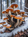 Ein Pilzwunder im Schnee: Leuchtend orange Samtfußrüblinge trotzen dem Frost und bringen Farbe in die stille Winterlandschaft.