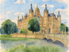 Schloss Schwerin, das majestätisch auf einer Insel im Schweriner See thront, ist ein faszinierendes Motiv für Aquarelle. Mit seiner beeindruckenden Architektur, den malerischen Gärten und der umgebenden Natur bietet das Schloss eine Vielzahl von Möglichkeiten, die Schönheit und den Charakter dieses historischen Ortes im Aquarellstil einzufangen. Die Architektur von Schloss Schwerin ist ein herausragendes Beispiel für den romantischen Historismus des 19. Jahrhunderts.