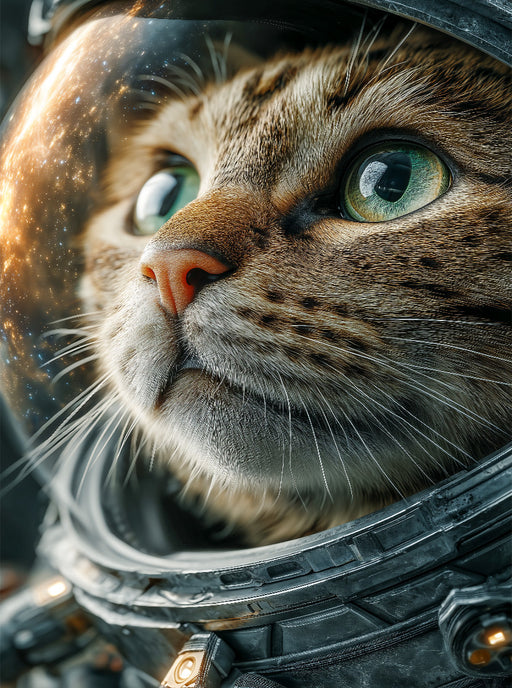 Eine Katze im Raumanzug schaut ins All - ein fantasievolles, lustiges Motiv für Kinder, Katzenfreunde und Sci-Fi-Fans. Perfekt für neugierige Entd...