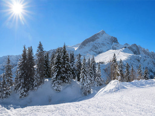 Sonnige Winterlandschaft Oberbayern Ein traumhaft schönes Skigebiet im Wintersportort Garmisch-Partenkirchen umfasst die drei Skiberge Hausberg, K...