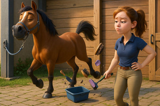 Alltag mit dem Pferd Mädchen brauchen ein Hoppi“ zeigt mit KI-gestalteten Bildern die lustigsten und chaotischsten Momente zwischen Pferd und Reit...
