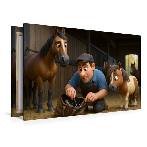 View full detailsPremium Textil-Leinwand Helfer beim Hufschmied