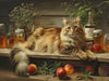 Diese liebevoll illustrierte Landhaussommer-Szene fängt den Zauber eines warmen Julitags ein: Eine prachtvolle Katze ruht zwischen Pfirsichen, Kräutern und alten Gläsern voller Sonnengold. Jede Linie und jede Farbnuance erzählt von Ruhe, Natur und ländlicher Fülle. Ein perfekter Blickfang für alle, die sanfte Sommerwärme und charmante Tiermotive in ihrem Zuhause willkommen heißen.