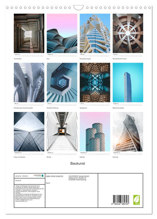 Baukunst! Wer liebt sie nicht? Kaufen Sie sich den modernen und erfrischenden Kalender, der die besten Baukunst-Motive beinhalten. (Monatskalender...