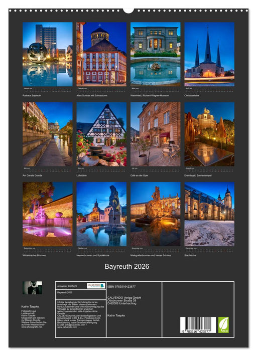 Die schönsten Plätze und Gebäude der oberfränkischen Universitäts- und Festspielstadt Bayreuth. (Monatskalender, 14 Seiten) Weltberühmt durch die ...