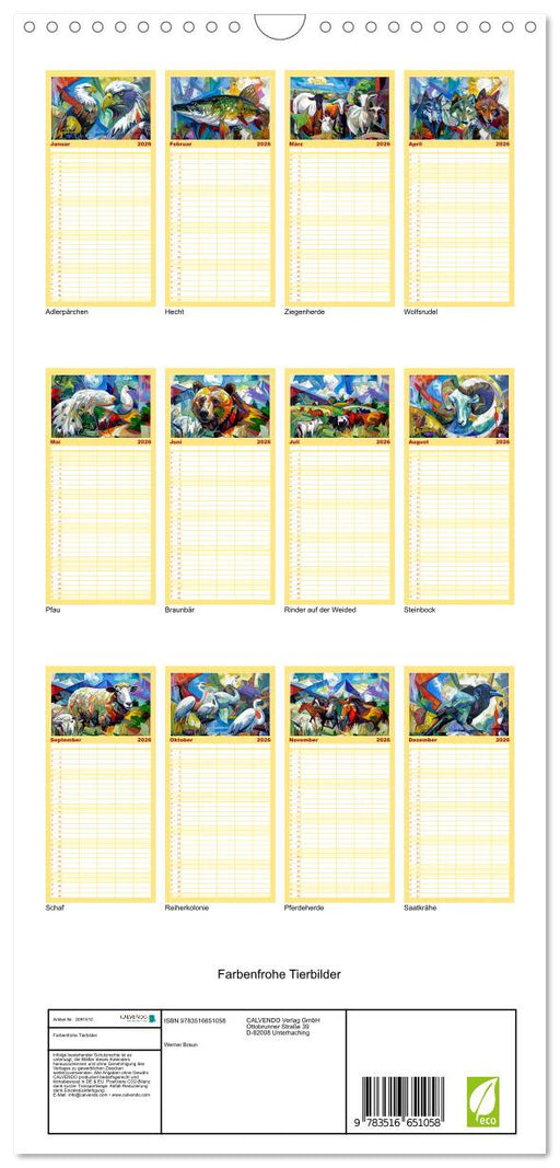 View full detailsFarbenfrohe Tierbilder (CALVENDO Familienplaner 2026)